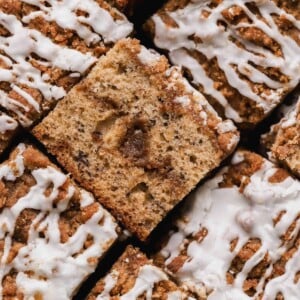- Cinnamon swirl- Create a cinnamon sugar swirl by layering half of the batter, sprinkling with cinnamon and brown sugar, then topping with the remaining batter and a generous crumble topping.