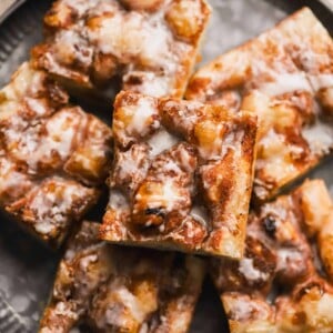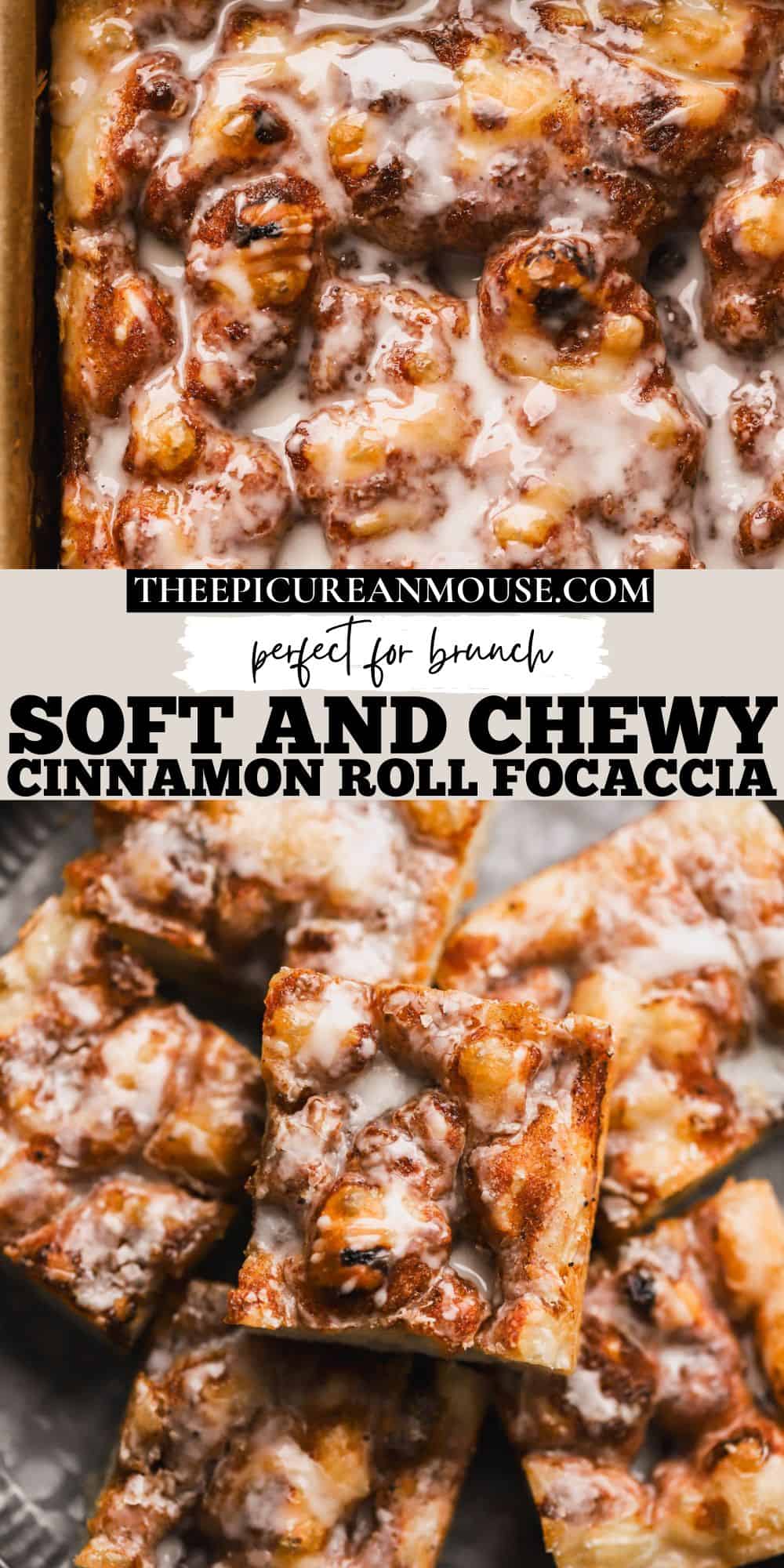 Cinnamon Focaccia is everything you love about a cinnamon roll, but without the extra effort. The dough bakes up soft and airy, with golden, crispy edges and all those little dimples filled with buttery cinnamon-sugar that caramelizes in the oven. Lastly, a drizzle of vanilla icing melts over the top, seeping into every warm, fluffy bite.