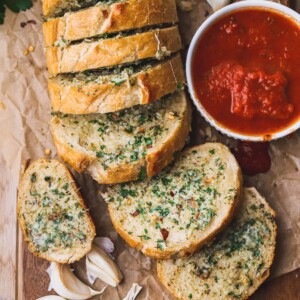 Serve this delicious garlic bread with my Creamy Mascarpone Tomato Sauce and Easy Cowboy Soup.