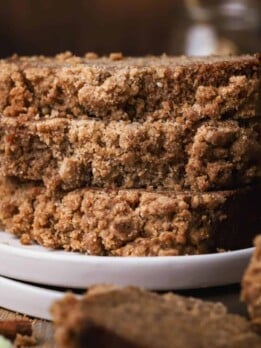 - Perfectly spiced- Cinnamon, nutmeg, ground ginger, and a hint of cloves give it that classic fall flavor that makes every bite so comforting.
