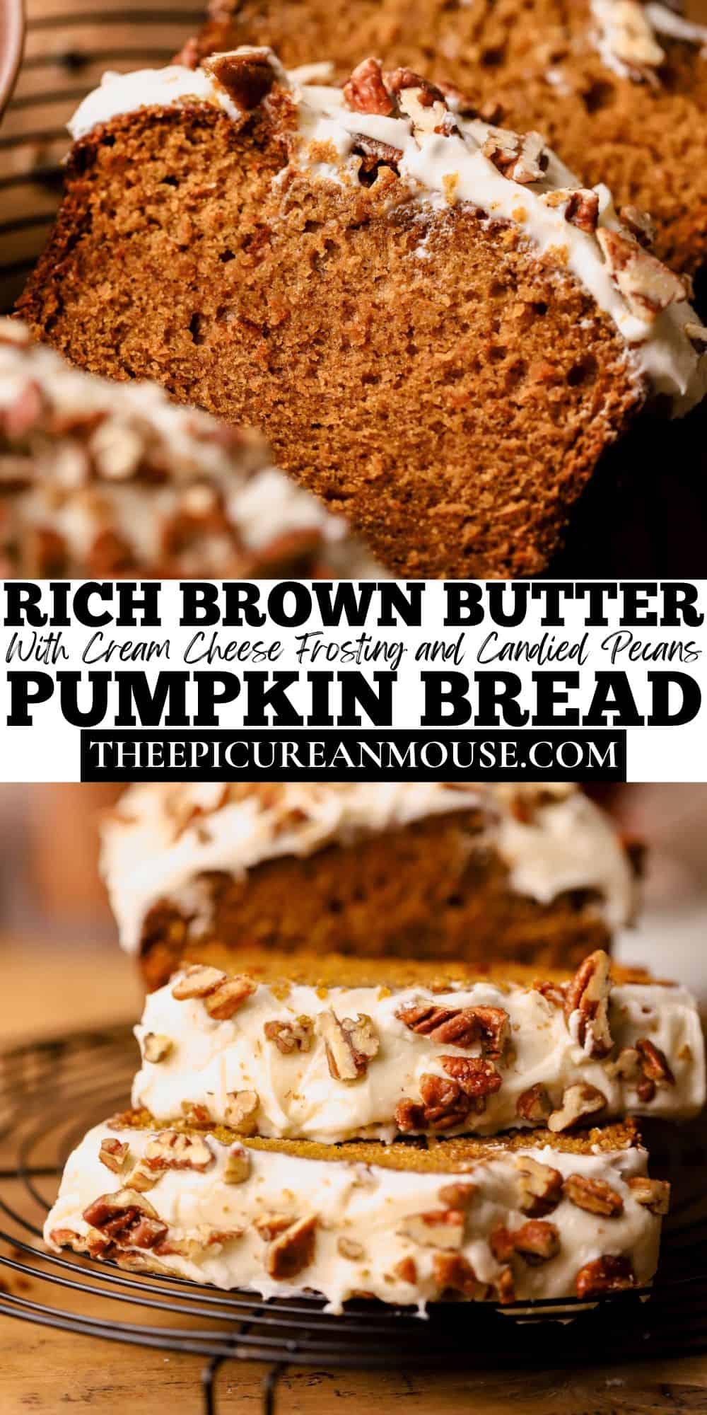 - Best texture- Moist pumpkin bread, creamy frosting, and a sprinkle of crunchy candied pecans. This recipe has everything you want in a pumpkin bread.