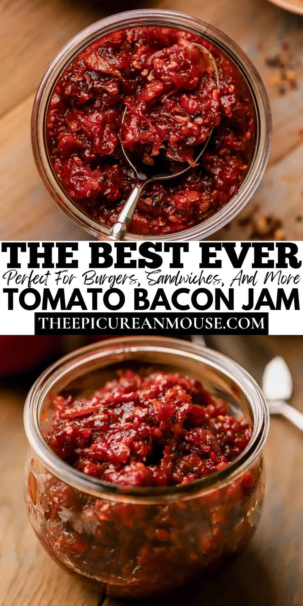 Tomato Bacon Jam is the perfect mix of sweet, smoky, and tangy. Made with garden-picked tomatoes, crispy applewood smoked bacon, caramelized onions, brown sugar and a little apple cider vinegar. It’s the kind of jam you’ll want to put on everything! Spread it on burgers or breakfast sandwiches, or even as a topping for baked potatoes.