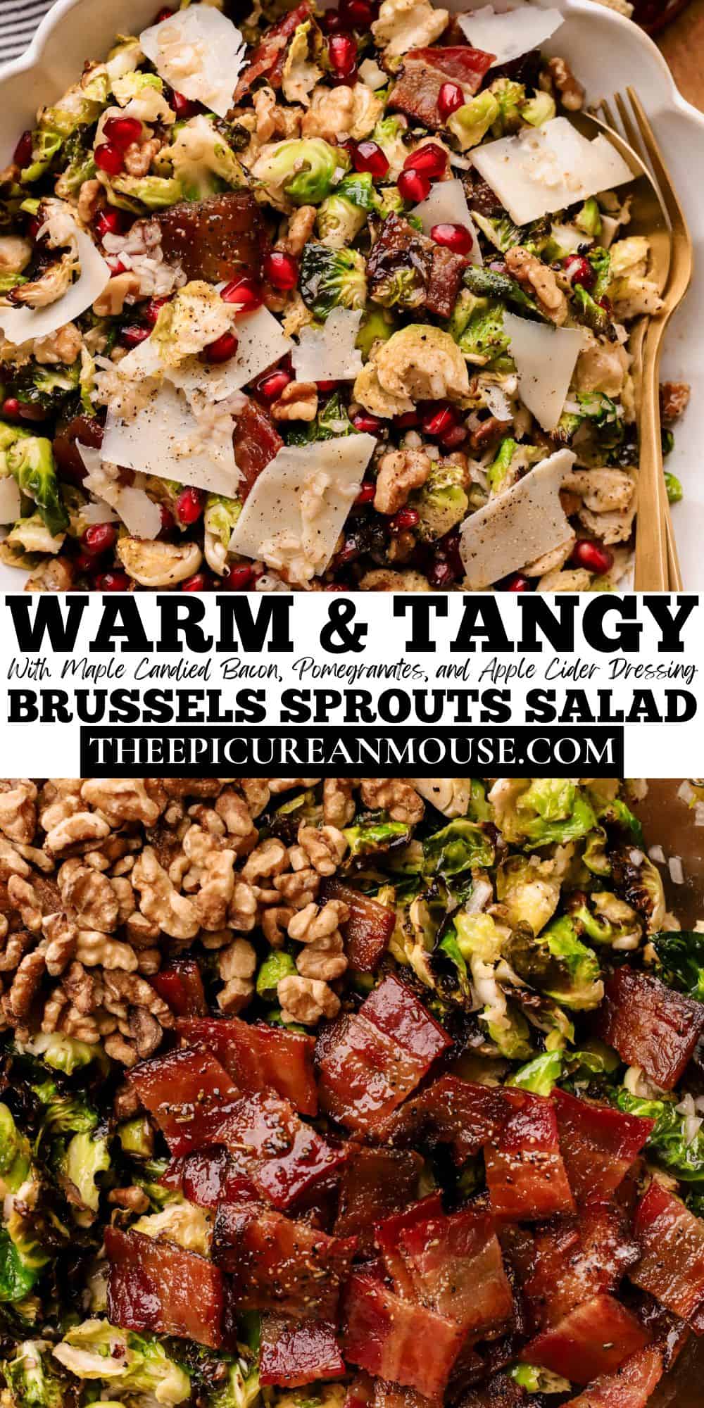 STEP 6: Garnish and serve. Transfer the salad to a serving bowl. Then, top with extra pomegranate seeds, shaved parmesan, and a little cracked black pepper. Serve immediately while the Brussels sprouts are still warm.